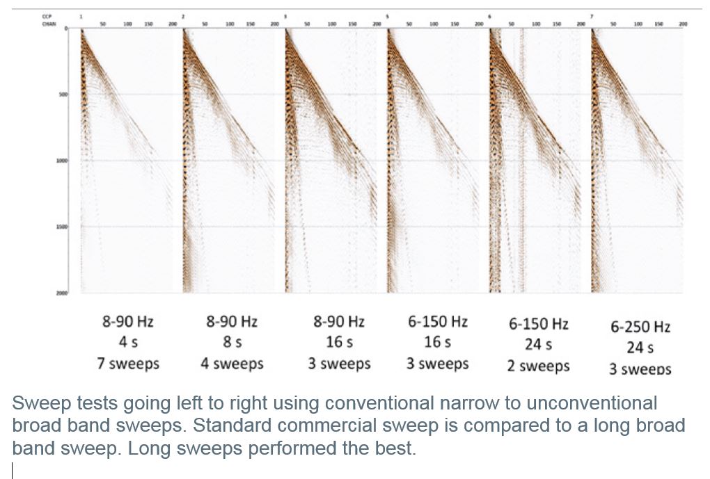 - The new broad band source also proved to be quite a powerful source; capable of producing enough energy to record reflections from depths of over 3000m.