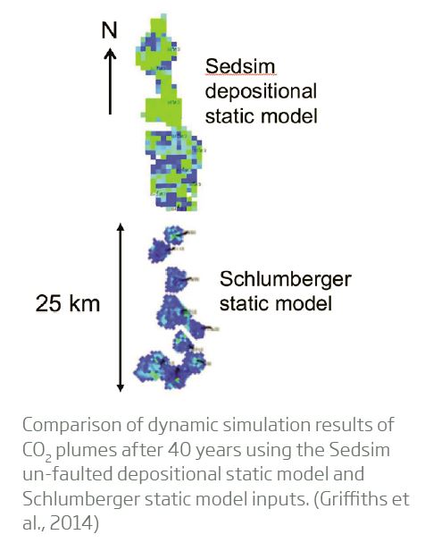 An alternative method, stratigraphic forward modelling (Sedsim), numerically simulates depositional processes such as erosion, transport, deposition, and compaction to predict lateral and vertical variations in reservoir and seal properties associated with predicted lithofacies distribution. An advantage is that forward numerical models may be constructed using a limited amount of data, useful for greenfield sites, and the resulting models may also reduce depositional uncertainty for the same amount of input data required by more conventional static methods.