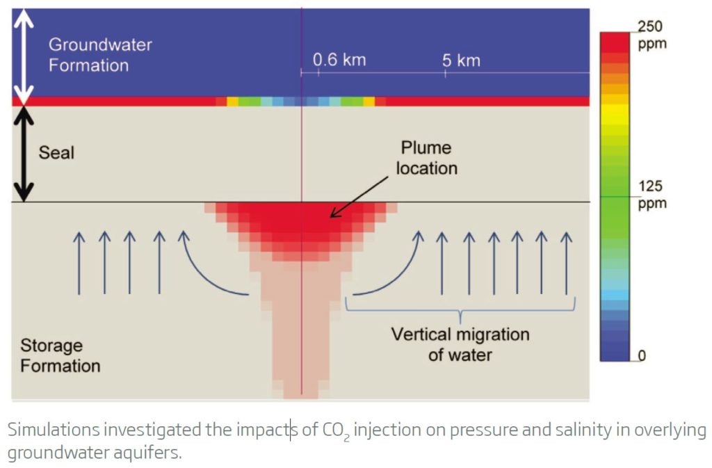 Therefore, when considering the impacts of geosequestration on groundwater resources, the potential for lateral displacement of saline formation water in the far-field of the injection site and its migration through the seal needs to be characterised. A new method has been developed to assess the possible impact of CO2 injection on groundwater resources by tracking salinity changes in a numerical model forecast. In all of the simulation scenarios the pressure build-up remains less than the fracture or threshold pressure of the seal.