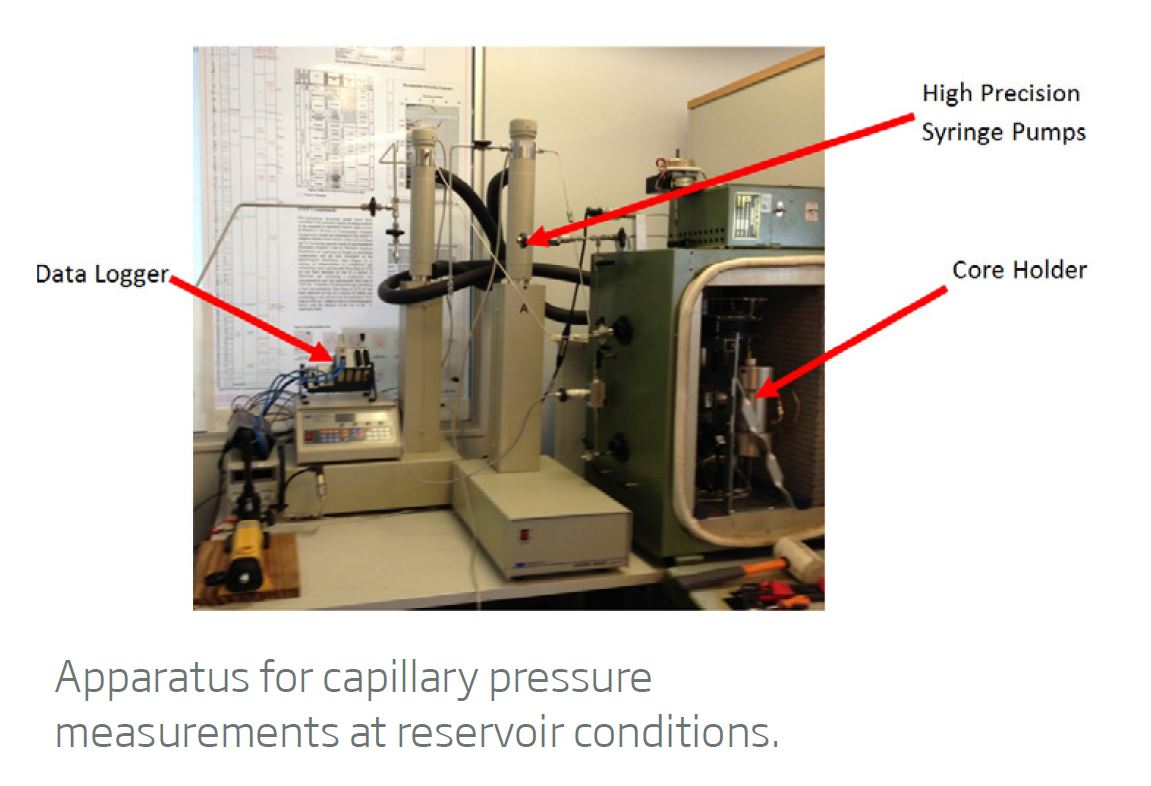 The nuclear magnetic resonance (NMR) response for a sandstone at reservoir conditions, at different CO2 saturation stages, was measured for the first time. In addition, the project also measured supercritical CO2 / sandstone/brine capillary pressures.